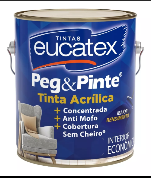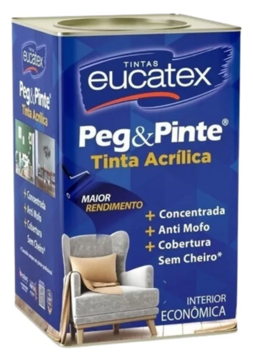 Eucatex peg pinte 18lapresentamos o eucatex peg pinte 18l, a tinta ideal para quem busca praticidade e qualidade em pequenos projetos de pintura. com sua fórmula inovadora, essa tinta oferece facilidade de aplicação e um acabamento perfeito, tornando cada trabalho uma verdadeira obra de arte.características:acabamento foscorendimento: 100m² acabadosdiluição: 20% com águasecagem rápidacobertura eficiente: reduz a necessidade de múltiplas demãos, economizando tempo e recursos.fácil aplicação: ideal para profissionais e amadores, garantindo um resultado uniforme com pouco esforço.versatilidade: perfeita para paredes internas, móveis e objetos decorativos, permitindo que você explore sua criatividade.transforme seus espaços com o eucatex peg pinte 18l e descubra como uma pintura de qualidade pode fazer toda a diferença!