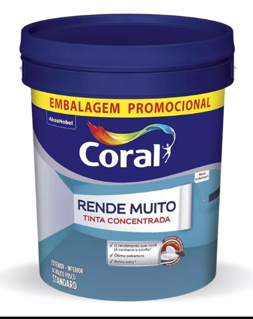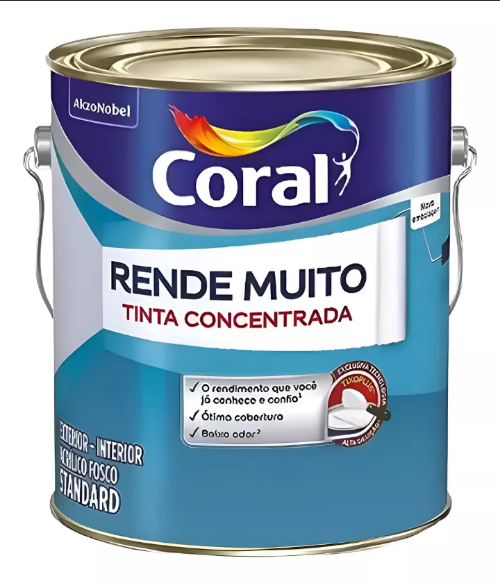 Conheça o coral rende muito, a escolha perfeita para quem busca eficiência e economia e rendimento em cada projeto. com sua formulação inovadora, este produto é ideal para garantir um acabamento impecável com menos produto, ótima para pinturas externas e internas.serve para pinturas: externas e internasacabamento foscorendimento: até 170m² acabadosantimofodiluição: até 80% com águasecagem rápida