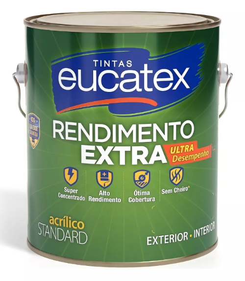 Descubra o poder do eucatex rendimento extra, a solução perfeita para quem busca desempenho e qualidade. este produto foi projetado para pinturas externas e internas, com tecnologia de ponta, oferecendo uma combinação excepcional de robustez e eficiência.serve para pinturas: externas e internasacabamento foscorendimento: até 34m² acabadosantimofodiluição: até 60% com águasecagem rápida