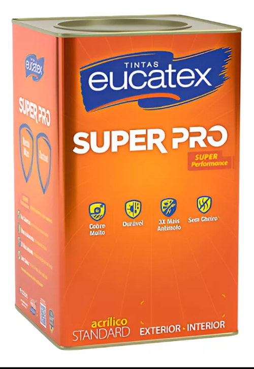 Descubra o poder da eucatex super pro, a solução perfeita para quem busca desempenho e qualidade. este produto foi projetado para pinturas externas e internas, com tecnologia de ponta, oferecendo uma combinação excepcional de robustez e eficiência.serve para pinturas: externas e internasacabamento foscorendimento: até 110m² acabadosantimofodiluição: até 20% com águasecagem rápida