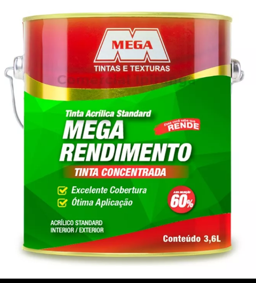 Eleve seus projetos de pintura a um novo patamar com a mega profissional, a tinta que une qualidade, eficiência e praticidade em um único produto. com 3,6 litros, é a escolha ideal para quem busca resultados excepcionais em um espaço reduzido.características:fórmula avançada: com tecnologia de ponta, oferece alta resistência e durabilidade, perfeita para ambientes internos.acabamento fosco rendimento: 70m² acabadosdiluição: 10% a 20% de águasecagem rápida: acelere seu trabalho com um tempo de secagem otimizado, permitindo camadas rápidas e eficientes.benefícios:excelente cobertura: a mega profissional proporciona uma cobertura uniforme, reduzindo o número de demãos necessárias.fácil aplicação: ideal para todos os níveis de experiência, com fácil manuseio e acabamento impecável.versatilidade de uso: perfeita para paredes, tetos, adaptando-se a diferentes superfícies com facilidade.transforme seus espaços com a mega profissional 18l e descubra a qualidade que você merece!
