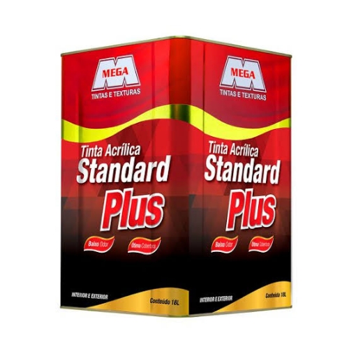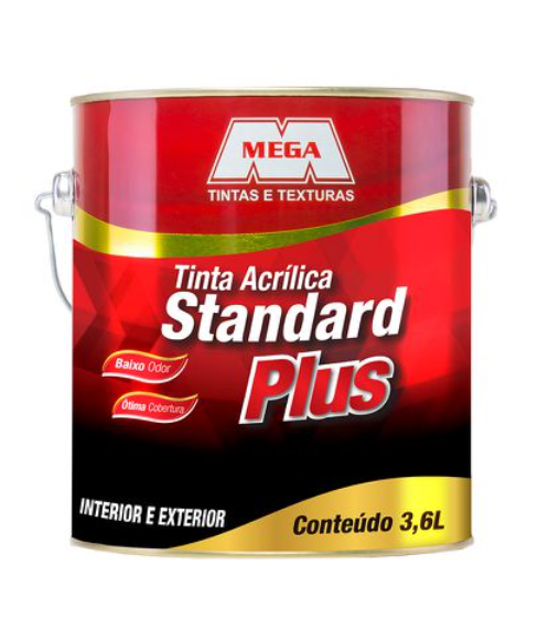 Mega standard plus branca 18ldescubra o poder do mega standard plus, a solução perfeita para quem busca desempenho e qualidade. este produto foi projetado para pinturas internas e externas, com tecnologia de ponta, oferecendo uma combinação excepcional de robustez e eficiência.serve para pinturas: externas e internasacabamento foscorendimento: até 120m² acabadosantimofodiluição: até 10% com águasecagem rápida