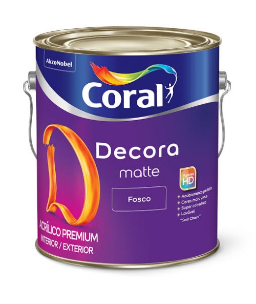 Decora matte fosco é um acrílico premium fosco com super cobertura, cores mais viva e acabamento perfeito.o resultado são cores com qualidade hd.indicação: exterior e interioracabamento: foscorendimento: a até 30m² acabadosdiluição: até 20%superficies: alvenaria, concreto, gesso e massa corrida ou acrílica.